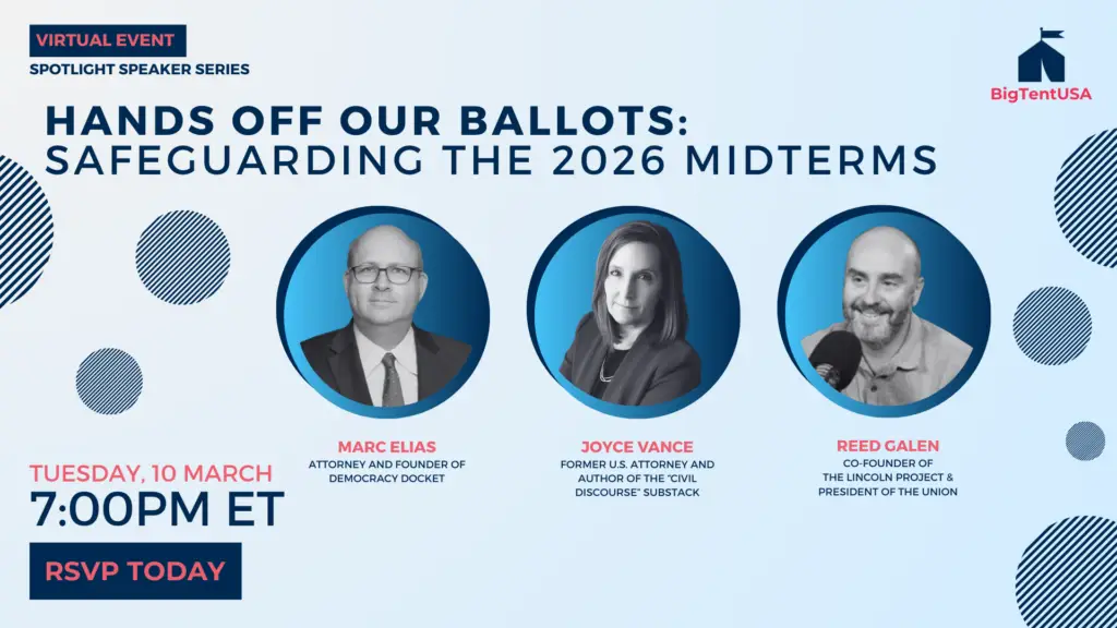 Join BigTentUSA on Thursday, March 19, at 12pm ET for a timely virtual conversation with Dan Osborn, an independent candidate for U.S. Senate, about what’s shaping the 2026 midterm elections in the Cornhusker State. For many Americans, Nebraska’s political landscape is often overlooked—but the dynamics playing out there offer a revealing snapshot of the forces shaping national politics. In this discussion, we’ll break down the key issues, political realities, and voter dynamics driving the race, and what they could signal for the broader midterm environment.