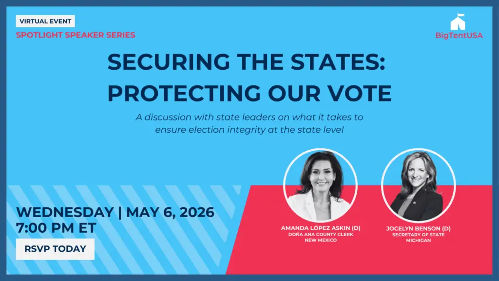 The fight for democracy is being won—and challenged—state by state. Join BigTentUSA on Wednesday, May 6 at...