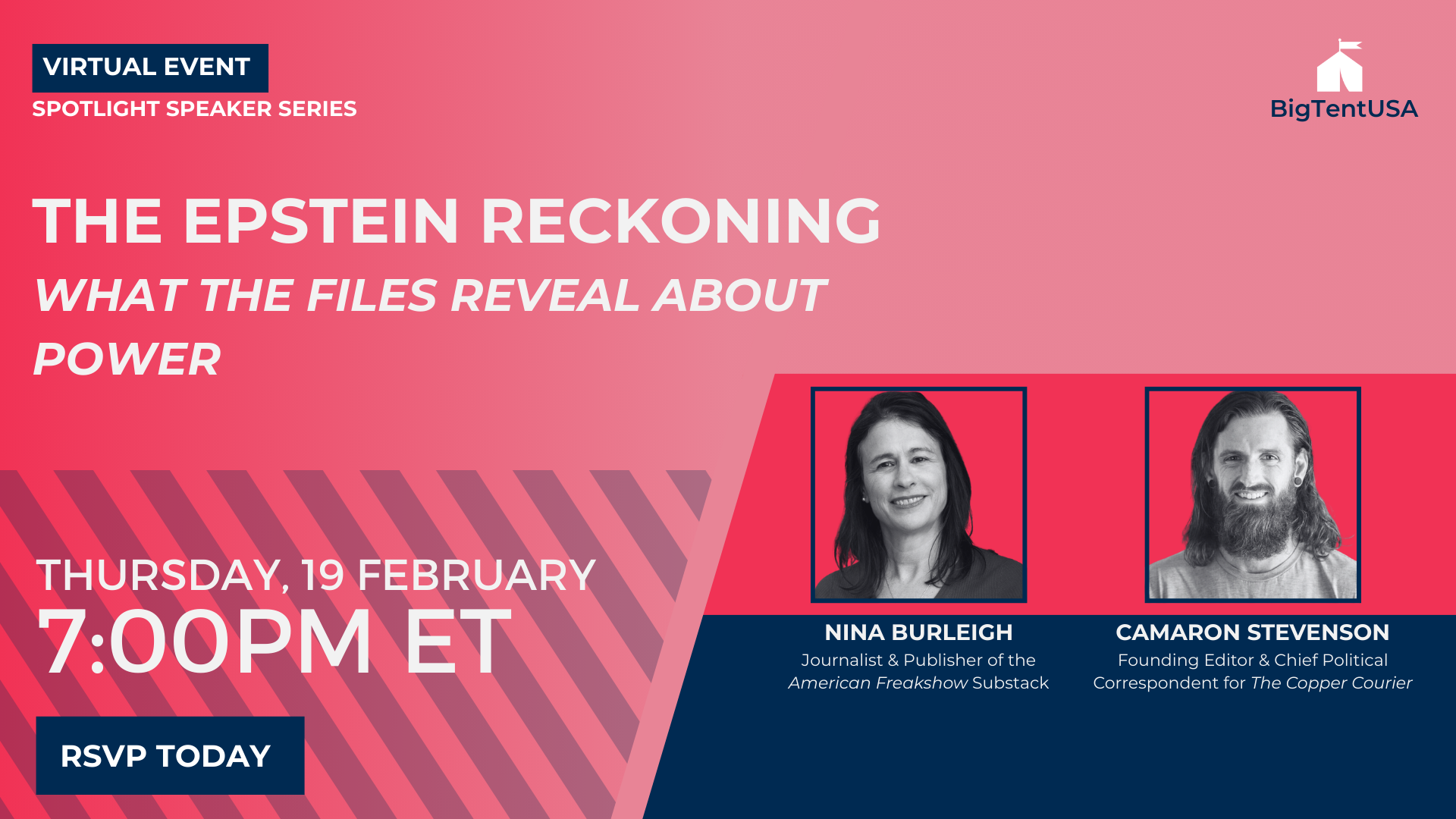 Join BigTentUSA on Thursday, February 19 at 7pm ET for a timely virtual conversation with Camaron Stevenson and Nina Burleigh of COURIER Newsroom as they break down the latest twists […]
