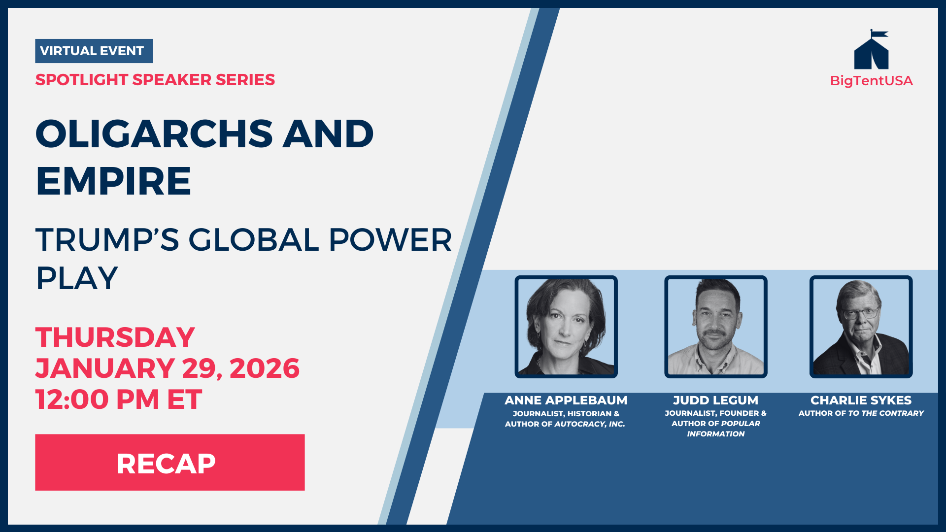 BigTentUSA was honored to host an urgent and insightful conversation with Ed Luce, U.S. national editor and columnist for the Financial Times, and Charlie Sykes, founder and former editor-at-large of […]