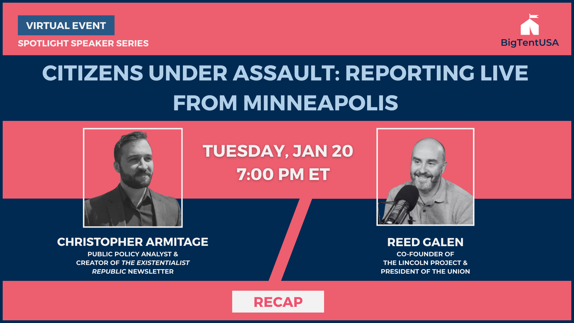 On January 20, BigTentUSA hosted a discussion featuring public policy analyst and creator of the The Existentialist Republic newsletter Christopher Armitage, and political strategist and co-founder of The Lincoln Project […]