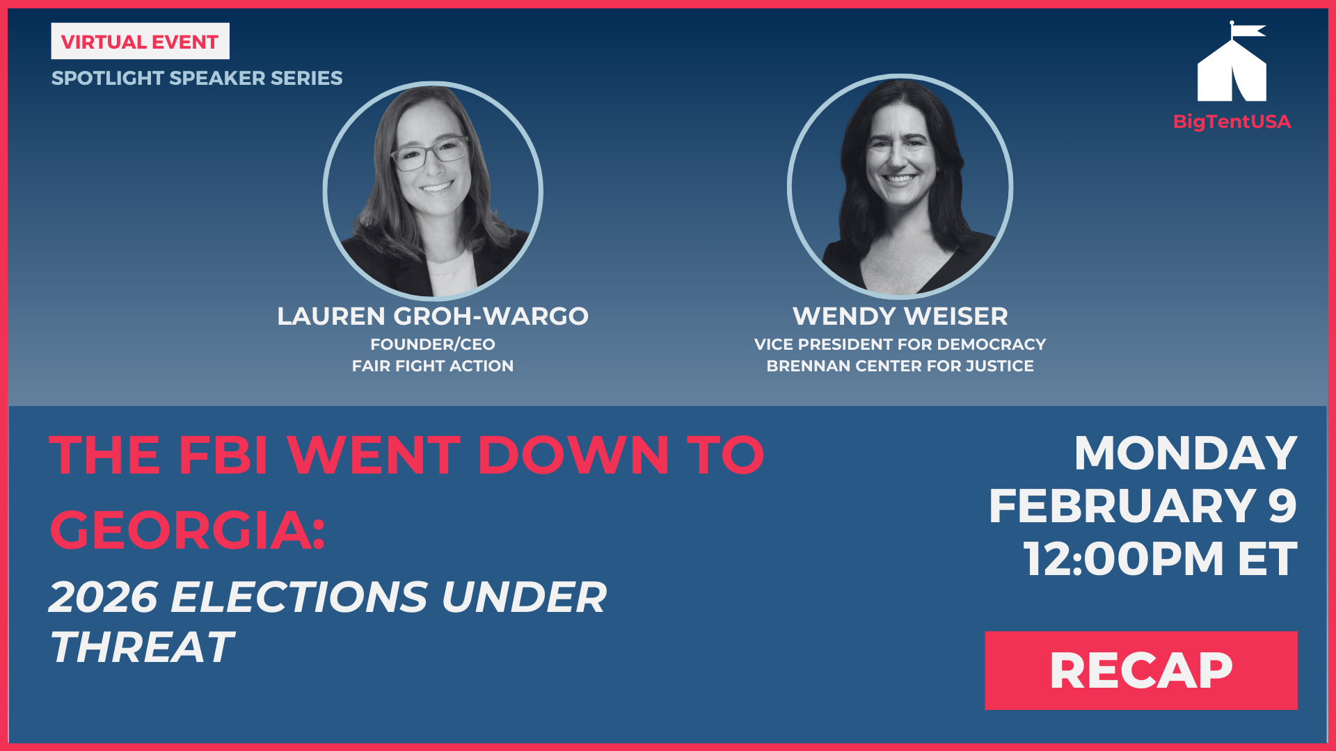 On Monday, February 9, BigTentUSA convened Lauren Groh-Wargo, Founder and CEO of Fair Fight Action, and Wendy Weiser, VP for Democracy at the Brennan Center for Justice, to sound the […]